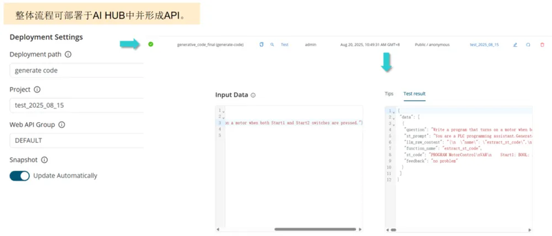 基于 AI Studio + AI Hub 的多智能体 ST 开发方案,实现了从“人工硬扛”到“AI 全流程”的升级。尤其是代码验证环节,让生成代码可控、可靠,避免了生产停机风险。最终,通过 AI Hub 部署为 API,企业可以把这一能力嵌入到日常开发流程,实现更快的交付、更低的调试成本、更高的生产稳定性。