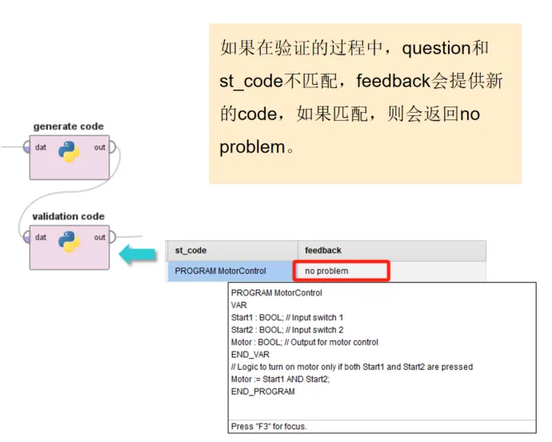 LLM 验证代码:这是关键环节!验证代理对生成的 ST 代码做双重检查: