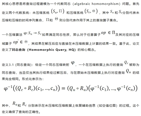 1.提出时序同态查询理论:首次为在压缩时间序列数据上进行查询构建了形式化的理论模型,为系统的正确性和有效性提供了数学保证。