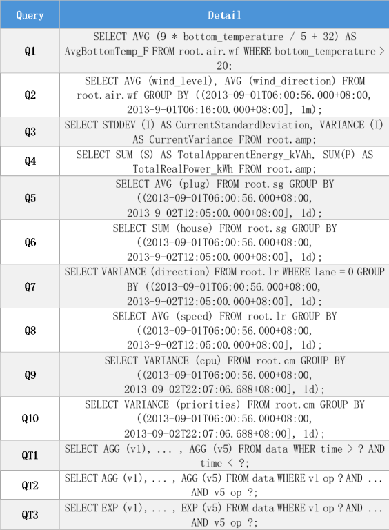 ·查询负载:设计了 10 个代表真实应用场景的查询,涵盖了过滤、聚合、表达式计算和窗口函数等多种操作。