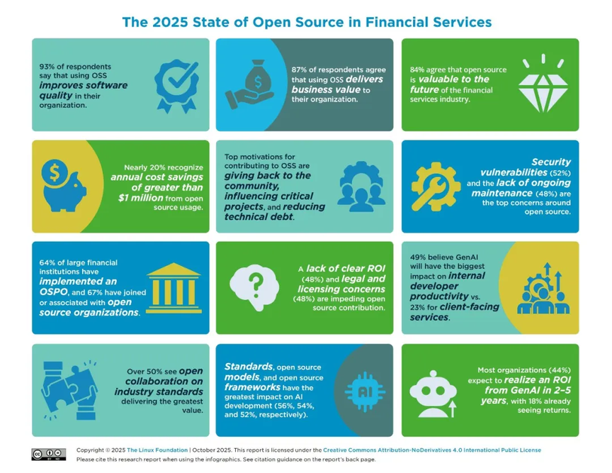 *文中所有数据及图片来源:Fintech Open Source Foundation (FINOS)《The 2025 State of Open Source in Financial Services 》(《2025 年金融服务开源现状报告》)