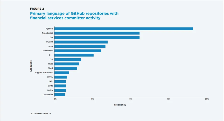 图 13:金融服务领域提交者参与的 GitHub 仓库的主要编程语言