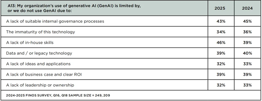 图 11:我所在机构对生成式 AI(GenAI)的使用受到限制,或因这些原因未使用生成式 AI: