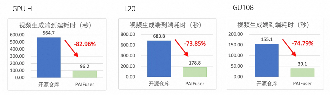 针对扩散模型(Diffusion Models),尤其是 DiT(Diffusion Transformer)架构,paiFuser 通过高性能一体化训练与推理加速框架,有效解决高计算复杂度、显存消耗大、实时性不足等问题。结合 PAI 平台的灵活、稳定、易用和高性能的训练/推理环境,在数千卡集群,训练场景达到了 40%+的 MFU;在单机 8 卡条件下,推理场景生成时间最高减少 80%+。