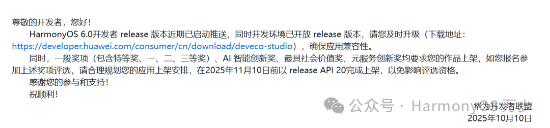 同样的,对于参加激励赛的小伙伴,按照最新要求,是必须要上架 HarmonyOS 6 版本的