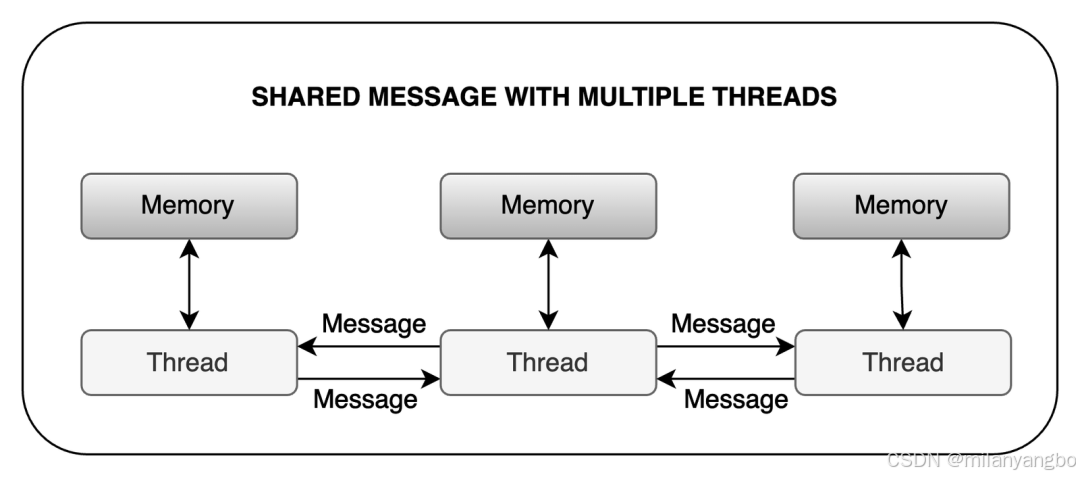 在共享消息模型(Show Message Model)中,线程或进程通过消息的发送与接收来实现通信与协同。这一模型的最大亮点在于,它能有效规避数据竞争及其他并发问题。原因在于,每个线程或进程都拥有独立的内存空间,无需借助锁或其他同步机制。该模型的另一显著特征是,消息的发送与接收是异步进行的。这意味着,一个线程或进程在发出消息后,无需等待接收方处理,即可继续执行其他任务。这种异步特性极大地提升了并发性能,因为线程或进程不会因等待消息收发而陷入阻塞。在该模型中,开发者的角色从“卫兵”转变为“流程设计师”或“编舞家”。他的核心任务不再是保护数据,而是设计高效、无误的数据流管道。通过精心编排数据在进程或线程间的流动顺序,隐式地构建了操作间的因果关系。程序的确定性,并非来自于对资源的加锁,而是源于消息传递所建立的自然时序。这种模型将并发的复杂性从“管理状态”转移到了“编排通信”,使得并发逻辑更清晰,也更易于推理。