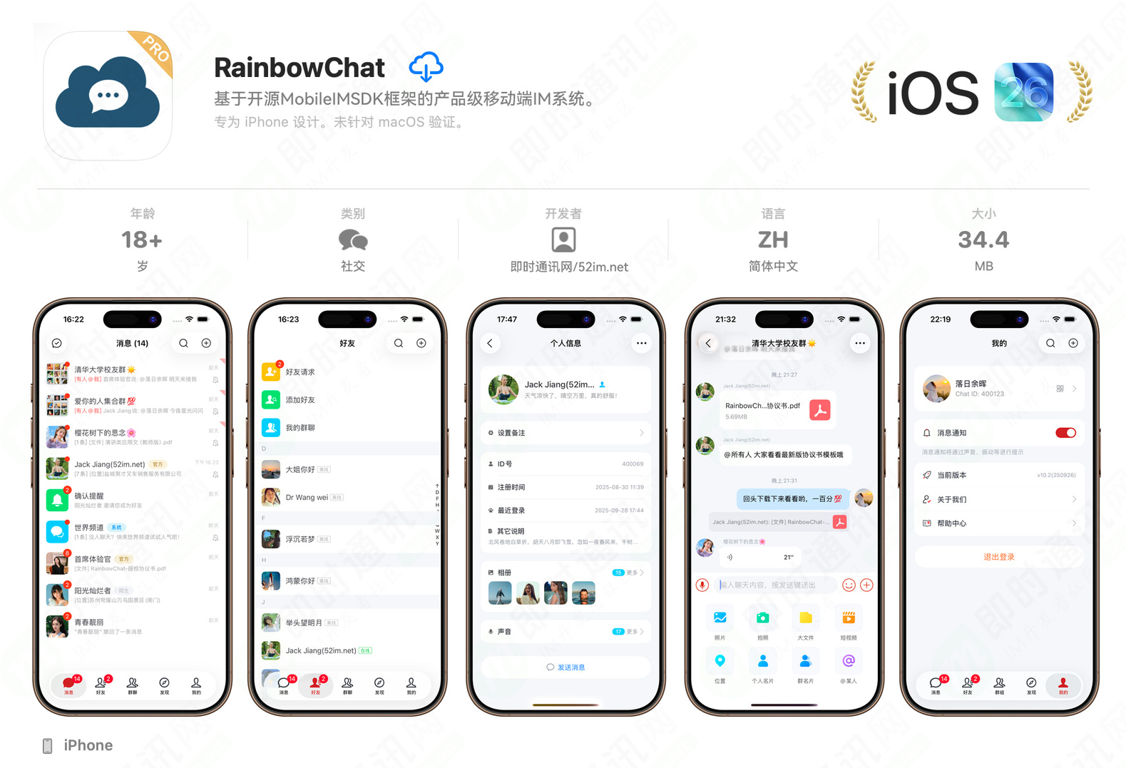 全面适配 iOS 26 液态玻璃,基于开源 IM 即时通讯框架 MobileIMSDK:RainbowChat-iOS 端 v10.2 发布