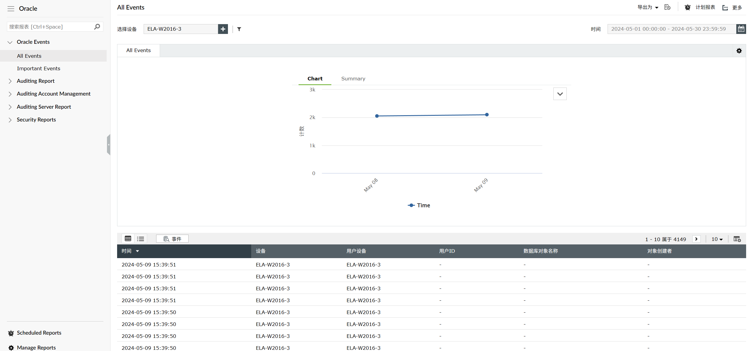 EventLog Analyzer 的预定义 Oracle 数据库报表和告警涵盖: