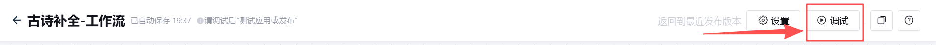 配置完成工作流之后,就可以点击工作流配置页面右上角的调试 按钮来调试了