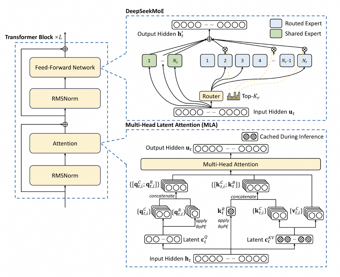 DeepSeek-v3 的 MoE 结构 引用自 DeepSeek-V3 Technical Report (https://arxiv.org/html/2412.19437v1)
