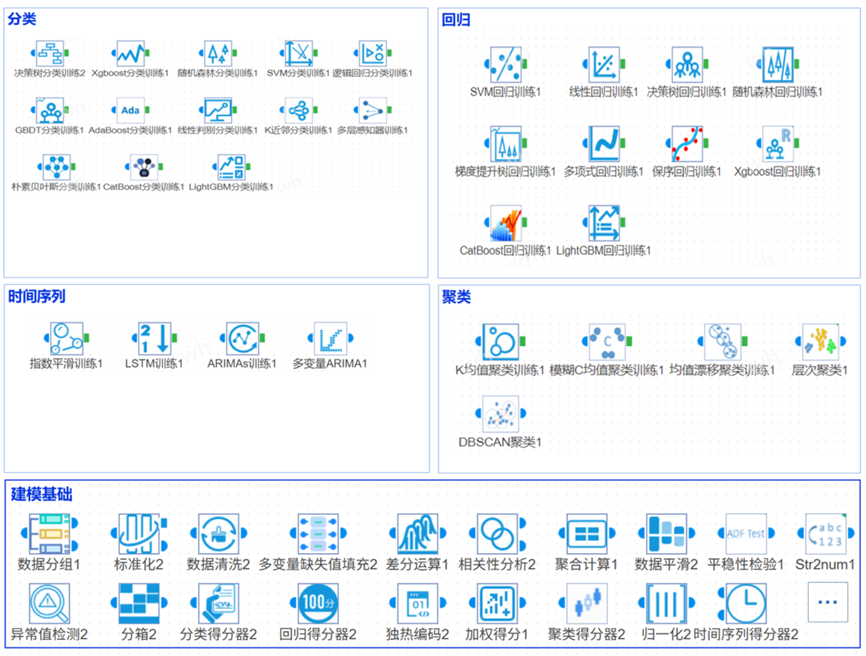 所有算法均以可视化、拖拽式的方式融入统一工作流,极大降低 AI 应用门槛,使用户能够快速完成模型构建、训练、评估与部署。