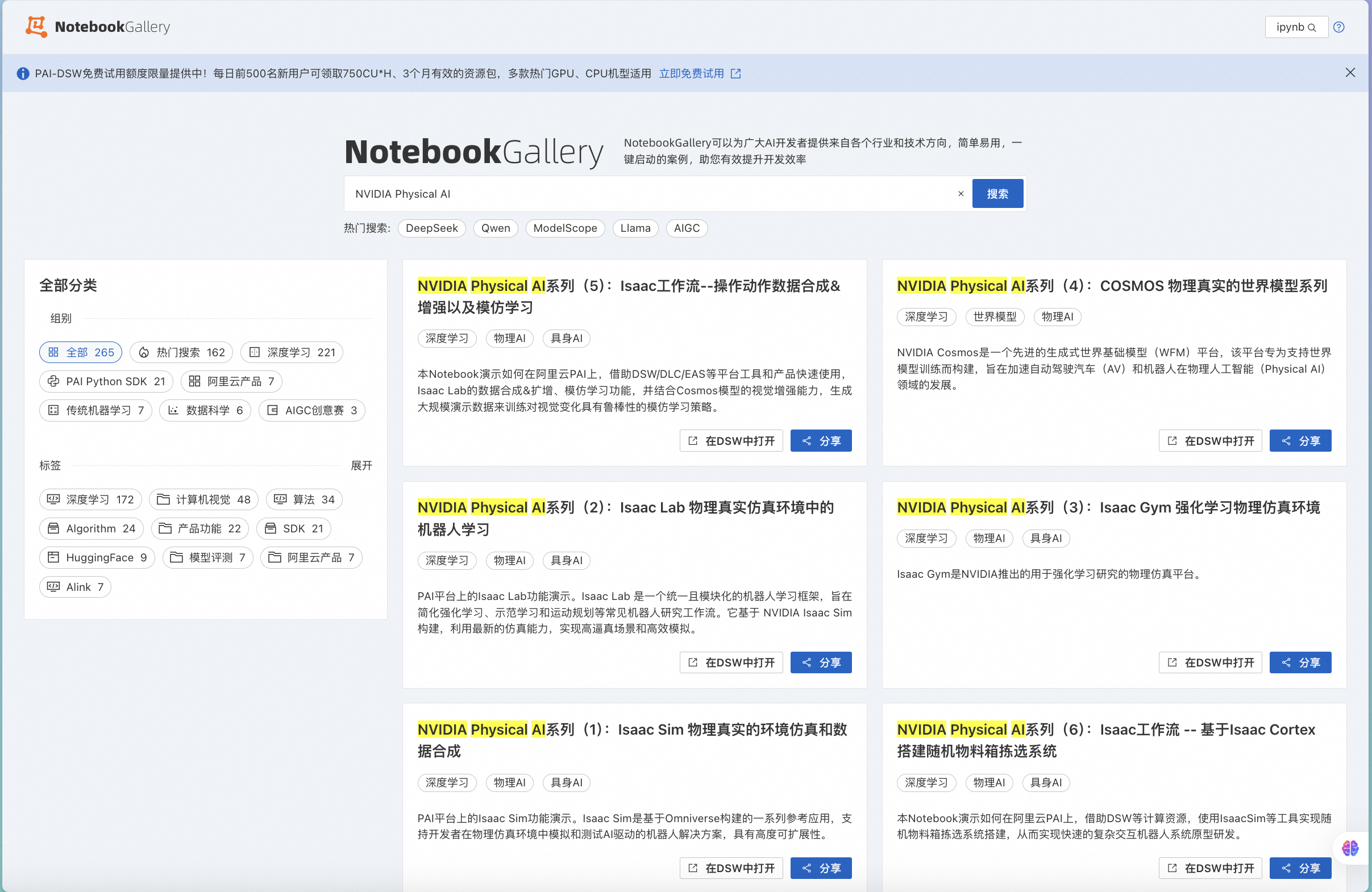 点击链接,前往阿里云 PAI 查看 Physical AI 最佳实践