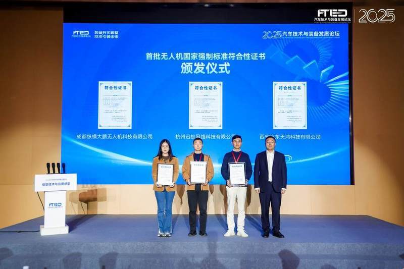 论坛期间举行了首批无人机国家强制性标准符合性证书颁发仪式,标志着我国低空产业发展进入“标准引领、规范发展”的新阶段。获证企业代表表示,将以此为契机,持续提升产品品质与技术能力,积极助推行业标准化建设。