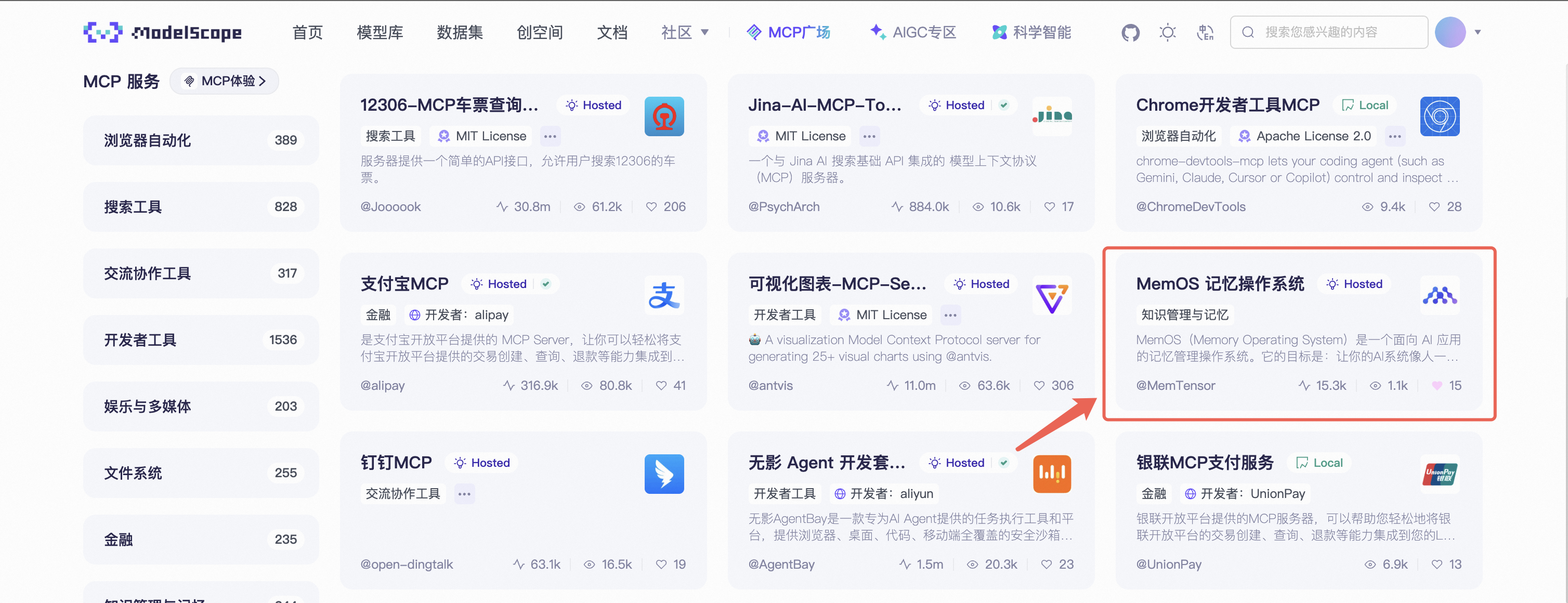 📍 魔搭社区 MCP 地址:https://modelscope.cn/mcp/servers/MemTensor/MemoryOperatingSystem