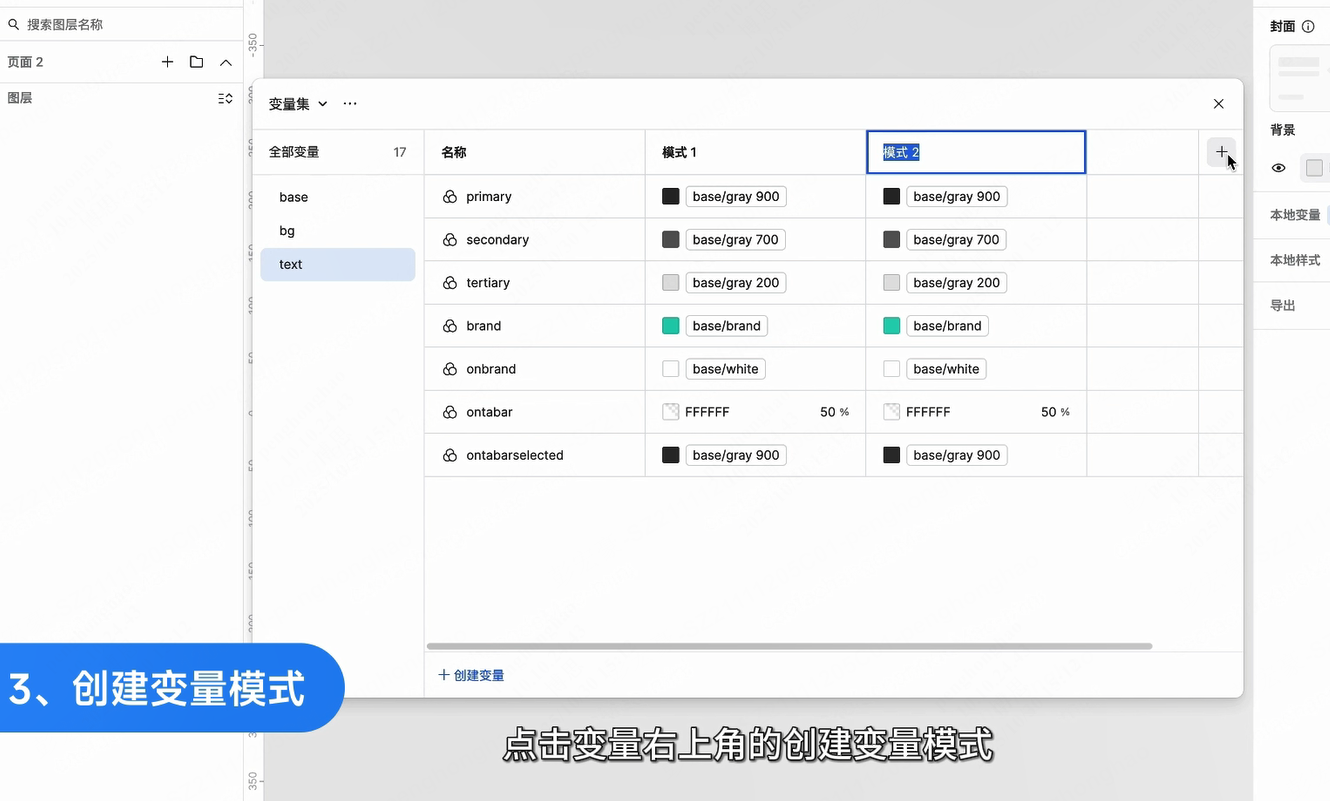 点击变量右上角的创建变量模式,Pixso 会自动创建名为 “模式 2”的列。