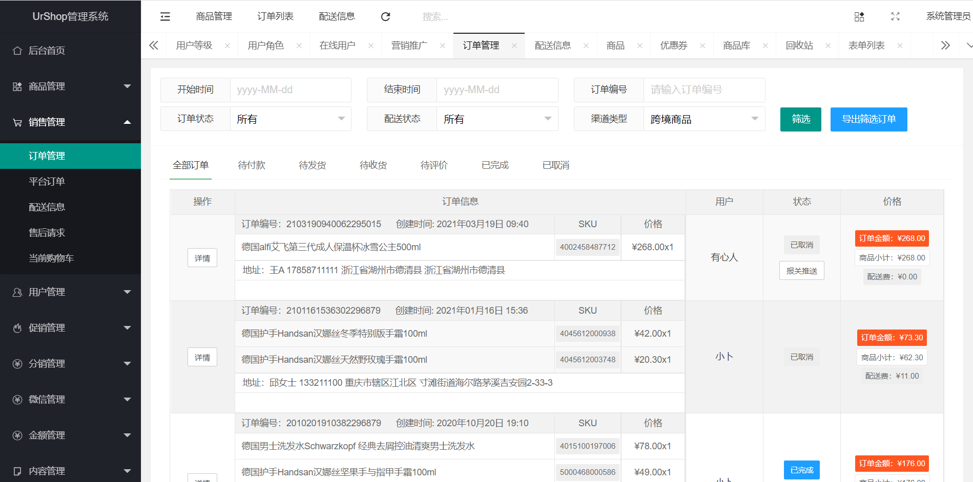 UrShop 是一款基于原生微信小程序 + .NET Core + Layui 技术构建、开源(GPL-3.0)、功能全面的微信小程序商城系统,项目包微信小程序端和后台管理端。