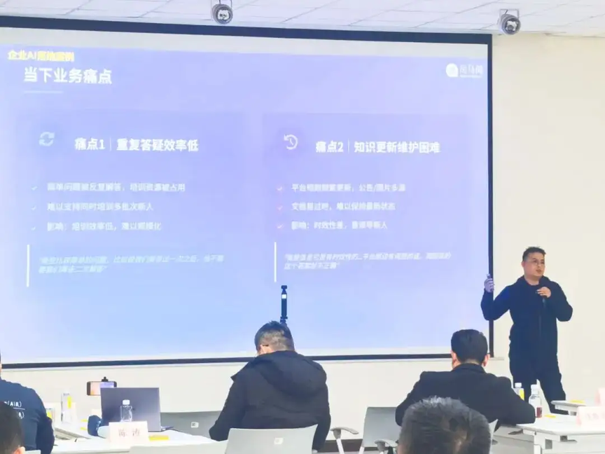 在案例分享环节,陈涛结合售前咨询、售后运维、内部培训、专业问答与高价值文档生成等多个真实业务场景,直观展示了司马阅 AI 解决方案的落地成效。他特别强调,企业 AI 落地并非追求“颠覆式”变革,而是要深度嵌入现有业务流程,精准解决高频、重复、专业要求高的实际问题,实现效率提升与风险可控的双重目标。同时,AI 落地不是一次性的部署工程,而是一个与业务深度共创、持续迭代演进的长期过程。