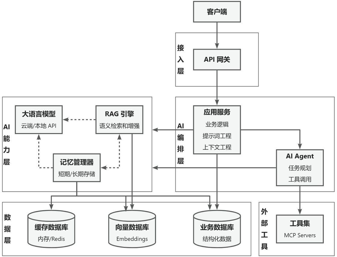 从设计模式来看,传统应用通常基于数据流与状态机进行构建,注重结构化的数据访问与存储、模块化/服务化的功能边界,以及基于 API 的能力扩展;而 AI 原生应用则围绕认知过程与交互流展开设计,聚焦于如何以自然语言有效引导 AI 理解意图、供给数据以突破 AI 静态训练的限制,以及拓展 AI 与外部环境交互的工具集合。