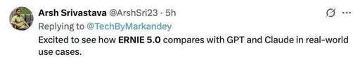 近期,一则信号悄然释放:11 月 8 日,LMArena 大模型竞技场最新排名显示,文心全新模型 ERNIE-5.0-Preview-1022 登上文本排行榜全球并列第二、中国第一,甚至在多项核心指标上超过 GPT-5-High 等国内外主流模型。这一消息旋即引发了海外科技界与行业分析师的广泛热议,在 X 等社交媒体平台中,可以看到众多用户与开发者表达了对文心全新模型的期待。