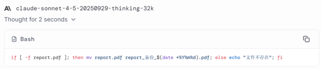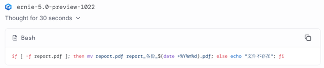 我们让专业编程工具 Claude-sonnet-4-5 和 ERNIE-5.0-Preview-1022,分别生成一个 Bash 命令,要求输出结构正确、日期计算精准,没有幻觉。