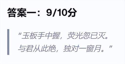 让第三方模型打分,对方认为:答案一 9 分,用“玉板”比喻手机,意象古典,是神来之笔,符合“语感”转换要求。而且情感递进强烈,“独对一窗月”的孤独,极具叙事张力。“忽已灭”“从此绝”等语言凝练。