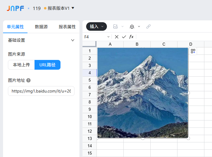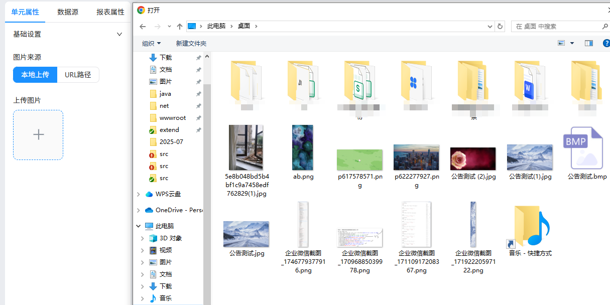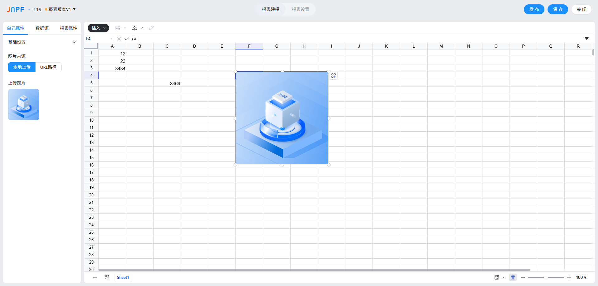 点击图片按钮,可上传图片,支持上传自定义悬浮图片、浮动图片和单元格图片