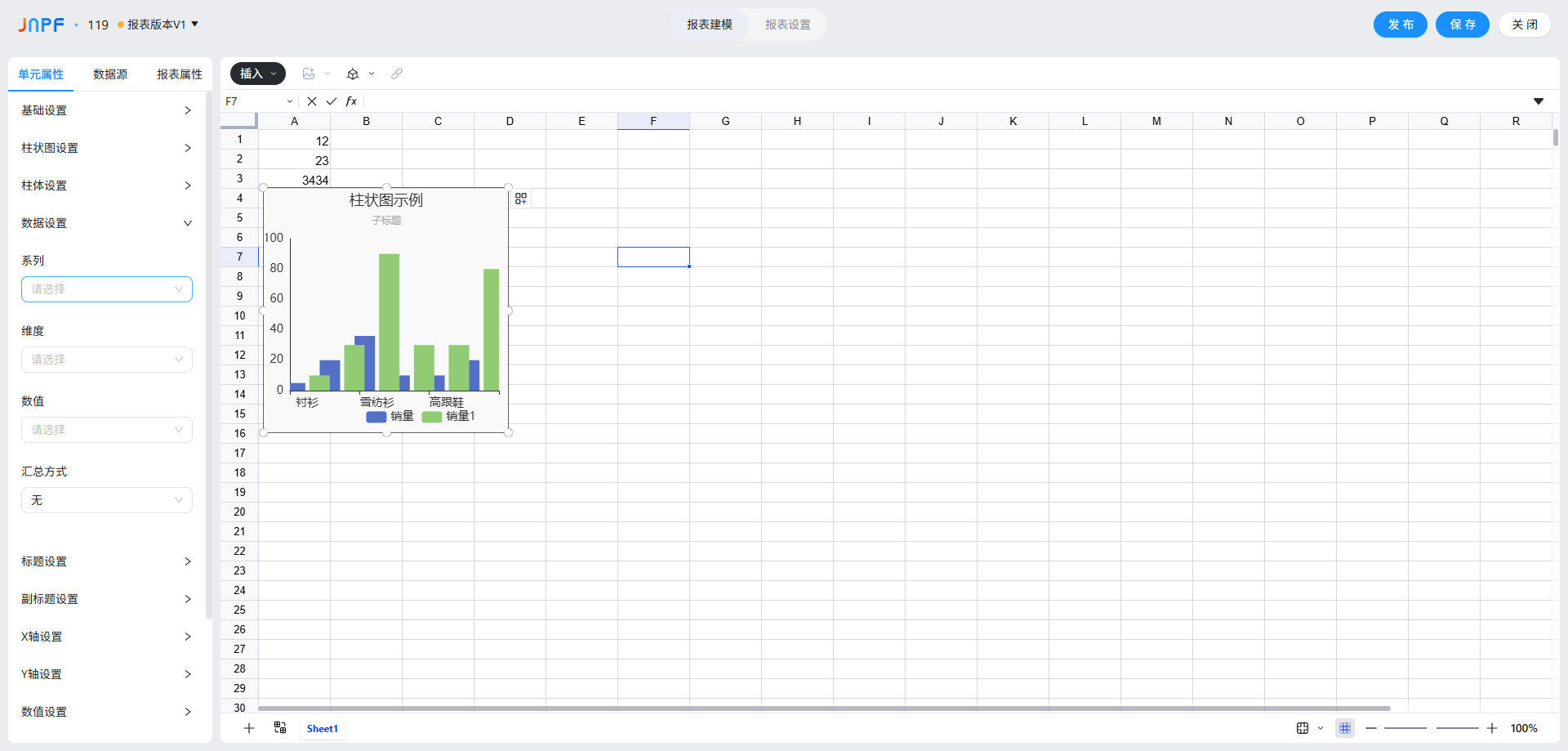 数据设置中,分类名称、系列名称、系列数值下拉值字段均来源于数据源