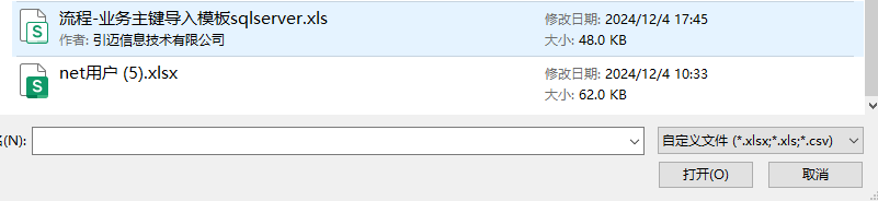 展示文件上传框,可上传 xlsx、xls、csv 格式文件,每次导入时替换工作表内的内容