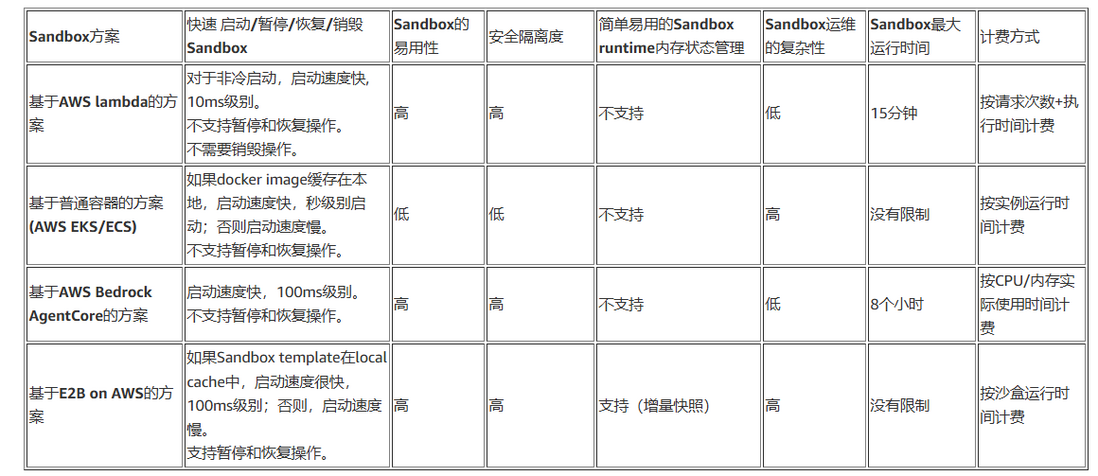 成本敏感型应用:对于预算有限但仍需要基本安全隔离的场景,可以考虑 Amazon Lambda 方案,特别适合短时间、轻量级的代码执行任务。