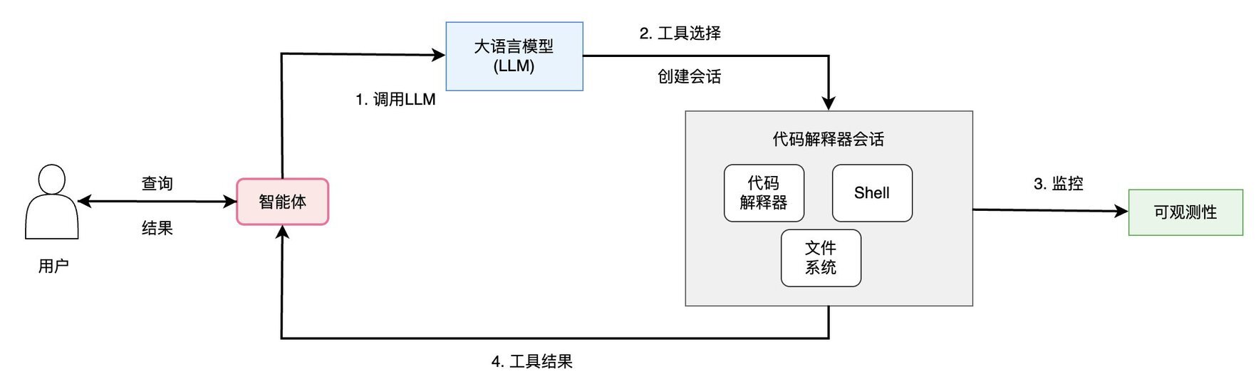 Agent 应用需要单独的代码执行环境来执行特定任务。以企业数据分析 Agent 为例,业务分析师可以直接上传一个 1GB 的销售数据文件到应用平台,然后通过自然语言告诉 Agent:”分析过去一年的销售趋势,找出表现最好的产品类别,并生成可视化报表”。Agent 能够自动解析用户意图,并调用大型语言模型生成数据读取、处理及分析代码。它会多次启动沙盒环境执行这些代码,最终生成包含图表和统计分析的完整报告。尽管整个流程可能需要数小时的连续计算,但用户只需通过自然语言描述需求并进行必要的修正即可。所有复杂工作均由 Agent、大型语言模型和沙盒工具协同完成,无需用户直接参与技术操作。