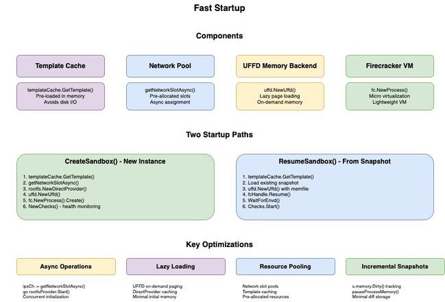 这些通用优化策略的综合应用,使 Agent 沙盒在保持安全隔离的同时,实现了极速启动性能,为各类 AI 系统提供了高效且安全的执行基础设施。如下图所示: