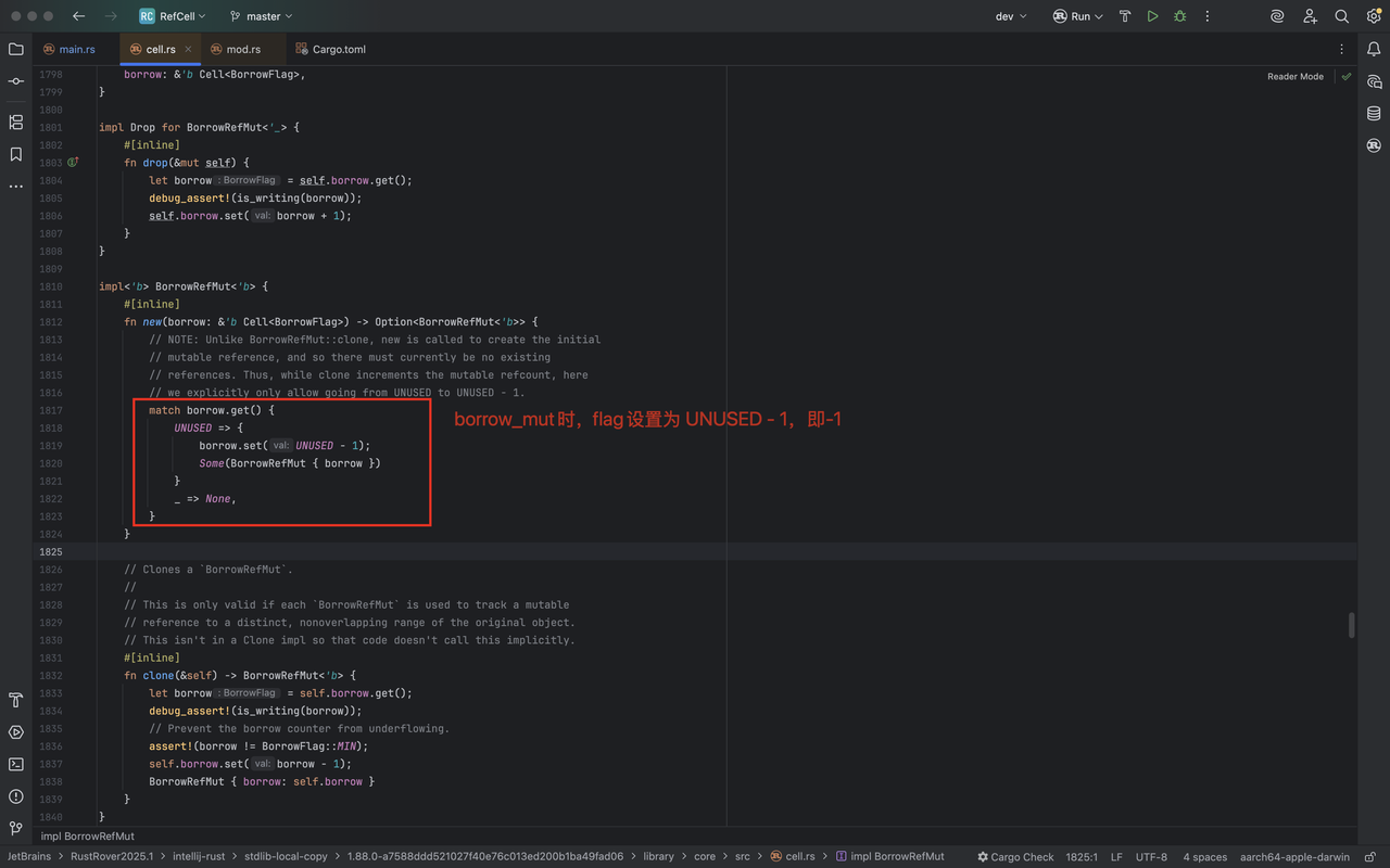 可以看出borrow()和borrow_mut()内部实现存在写操作,多线程访问时,flag 状态管理可能出错,导致 panic。