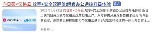 亿格云作为国内 SASE 一体化办公安全的领军者,选择将向日葵远程协助能力深度嵌入其一体化办公安全平台,这一转变充分体现了专业客户对向日葵技术实力与服务能力的认可。