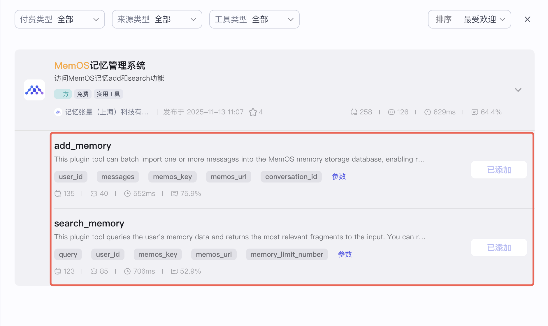 在插件列表搜索 MemOS 或 记忆