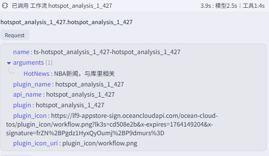 因此,在调用新闻推荐工作流时,会搜索 NBA 新闻与库里相关的内容: