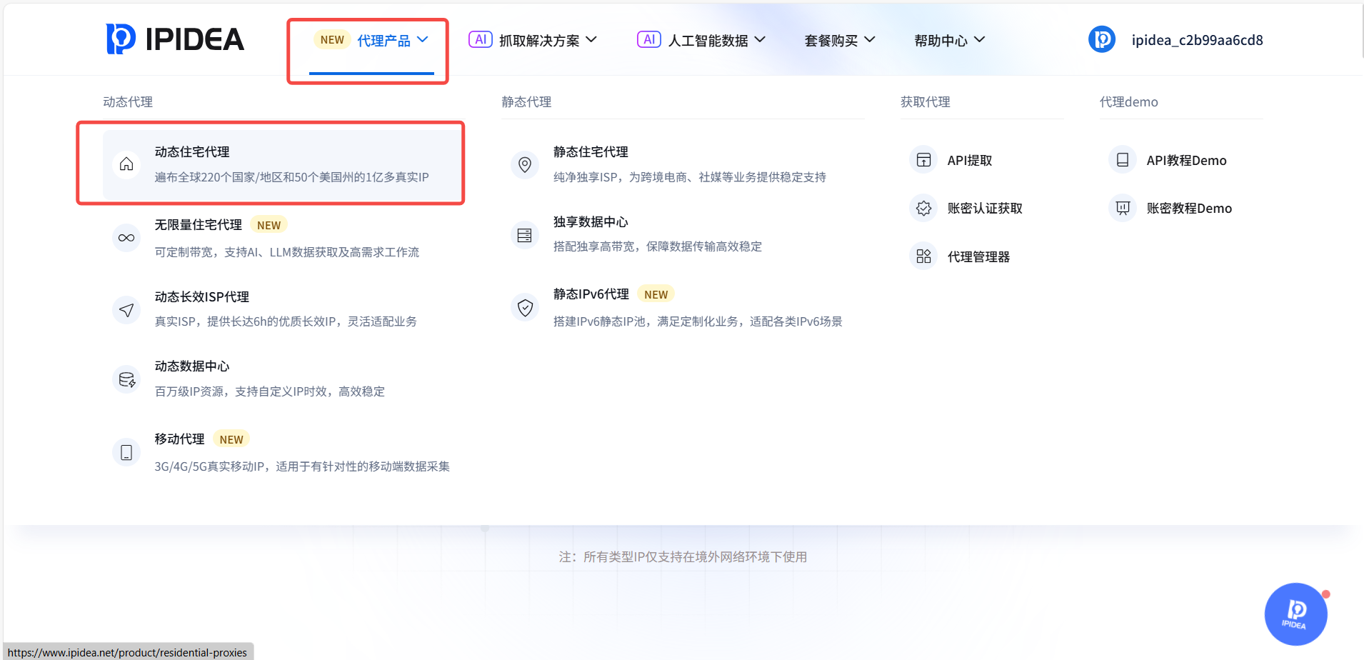 这是我们工具能够稳定运行的“生命线”。亚马逊等网站的网站访问策略非常严格,如果使用固定 IP 频繁访问,很快就会被处理。IPIDEA动态代理 IP 的作用就在于每次请求都换一个“身份”,从而避免被检测。