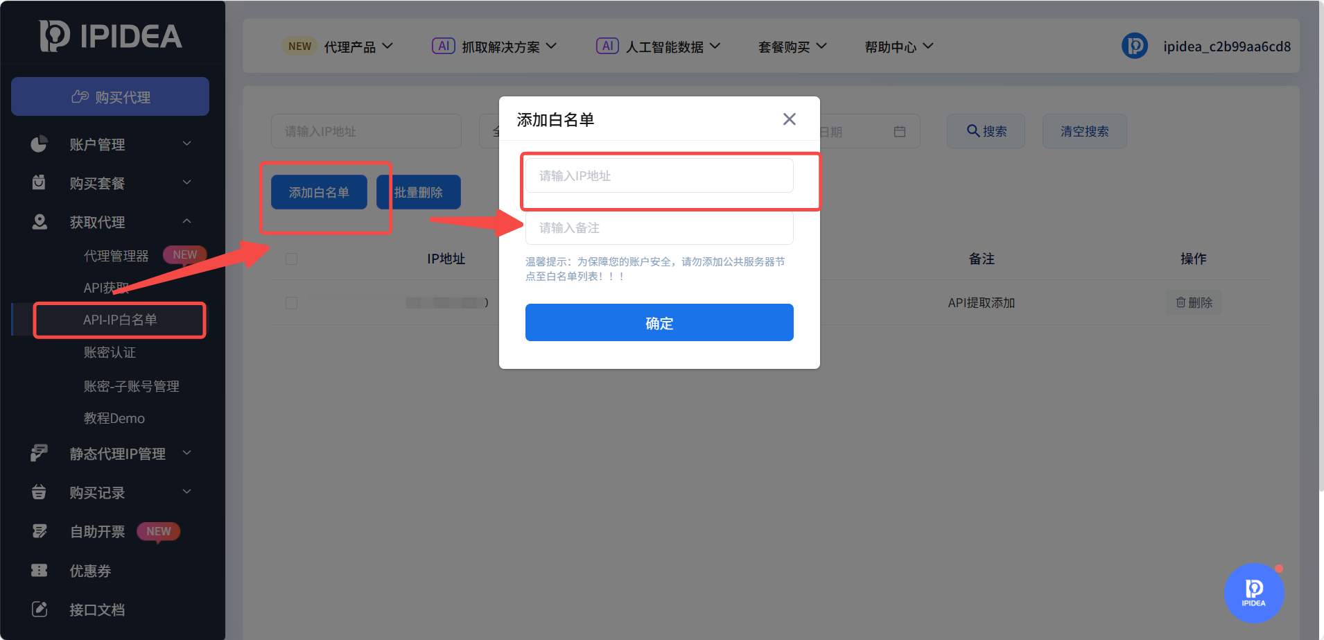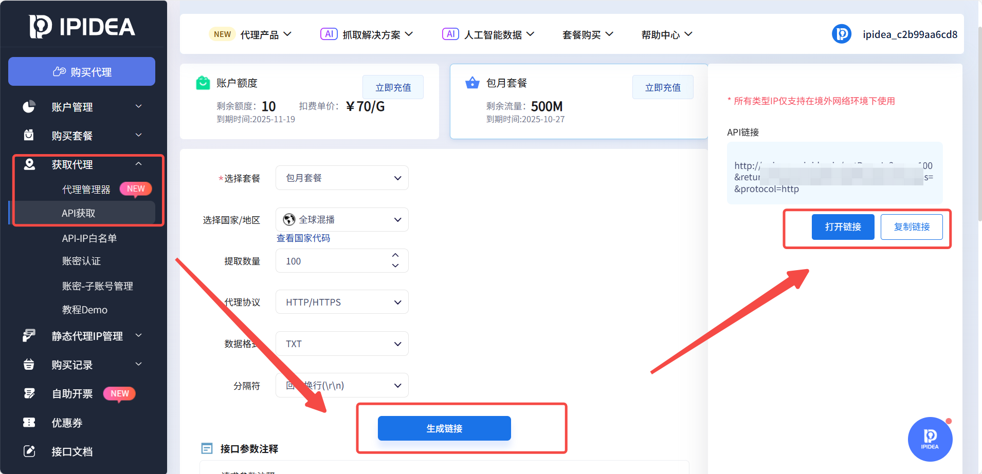 确定 IPIDEA API 链接: 这个链接在每次调用时会返回一个或多个(根据