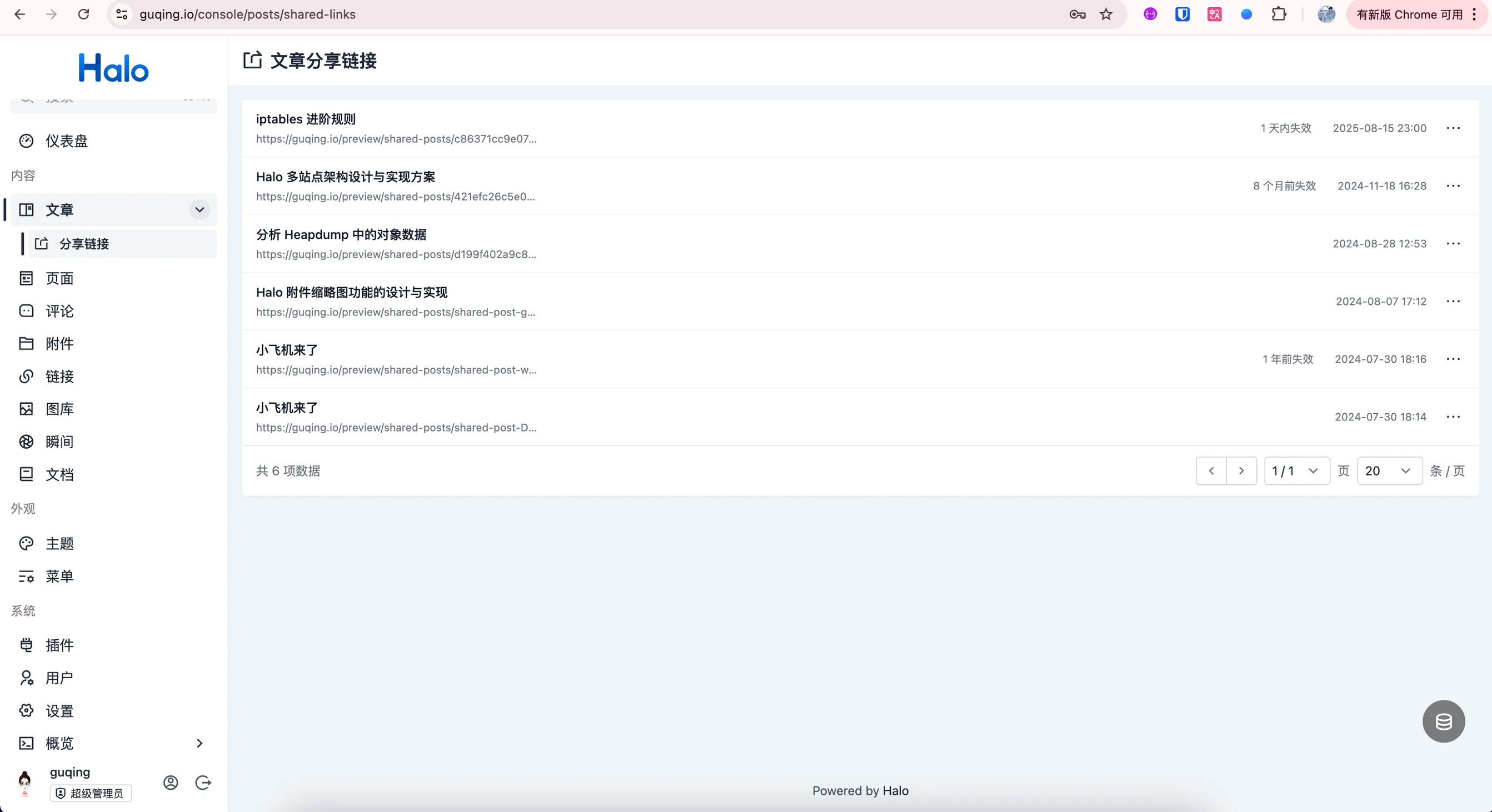 3. 分享链接管理