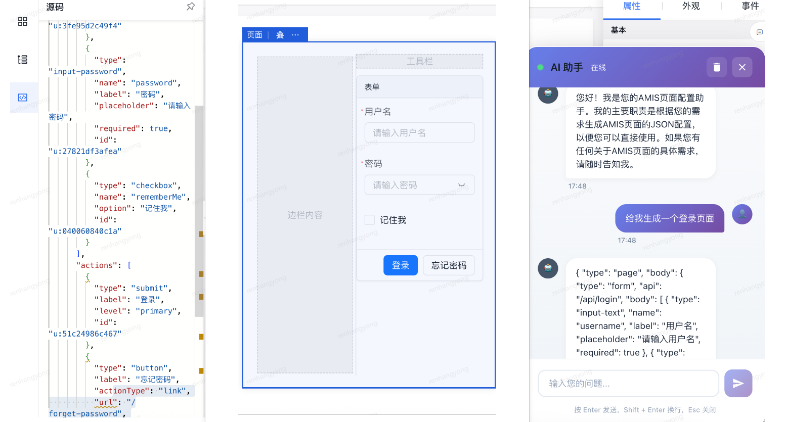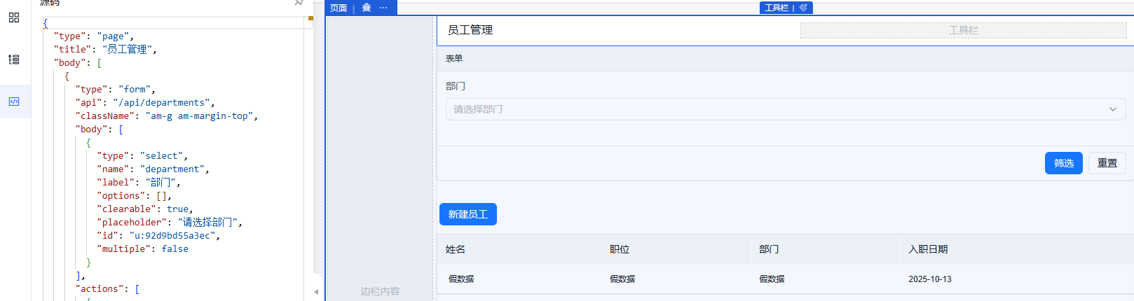 AMIS 是百度开源的一款基于 JSON 配置的前端低代码框架,它通过声明式的配置方式让开发者能够快速构建各种后台管理系统界面,其核心优势在于其丰富的组件库和高度可定制性。在可视化操作方面,AMIS 提供了配置面板,允许开发者通过可视化方式编辑组件属性,同时支持代码模式直接编辑 AMIS 配置代码。