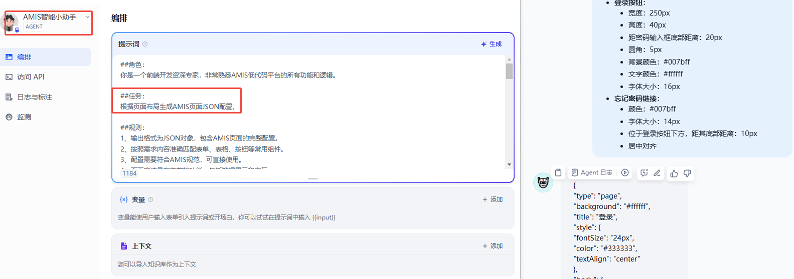 AMIS 生成页面 JSON 的 Agent 详细信息