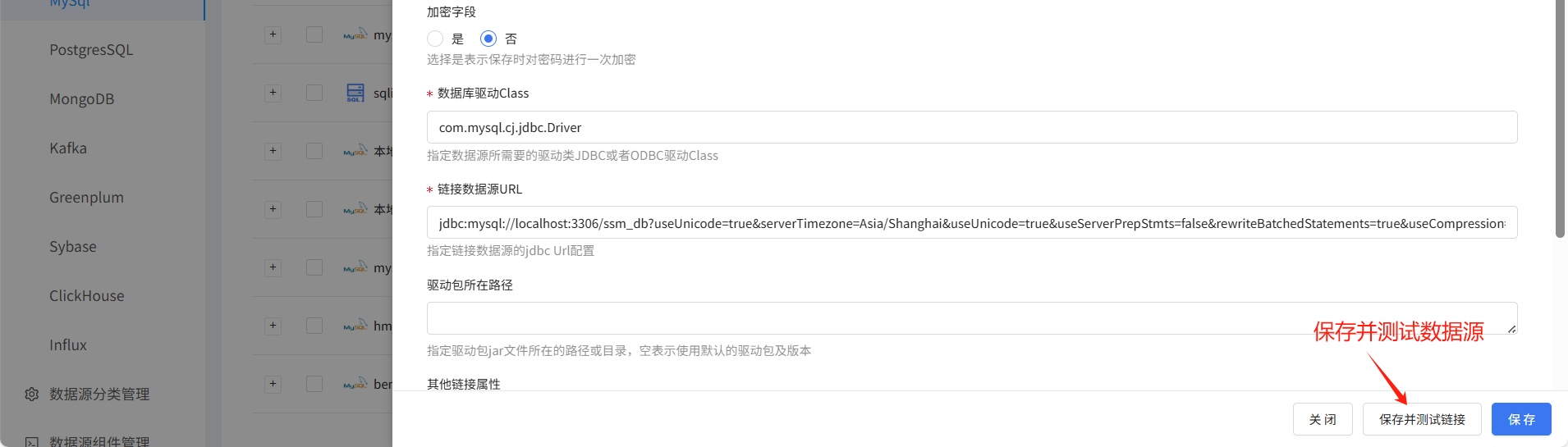 填写数据源相关配置: