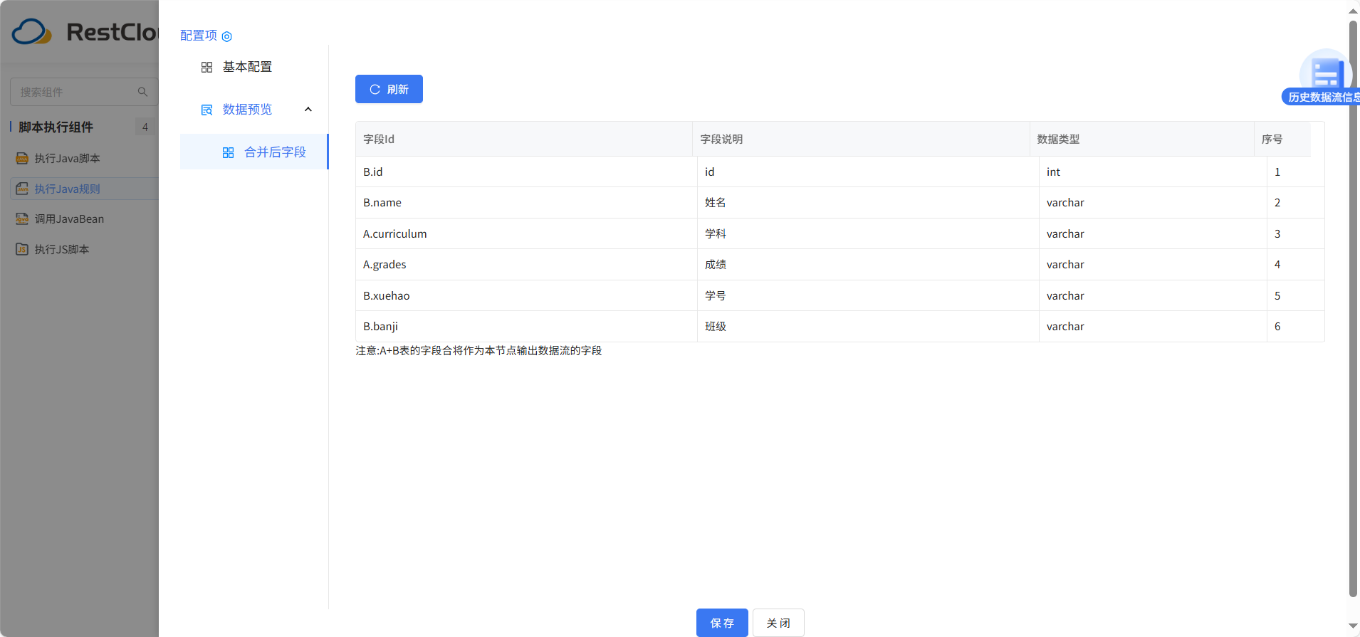 合并之后输出的字段