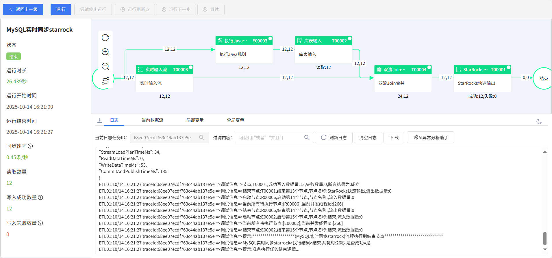 流程运行结果:
