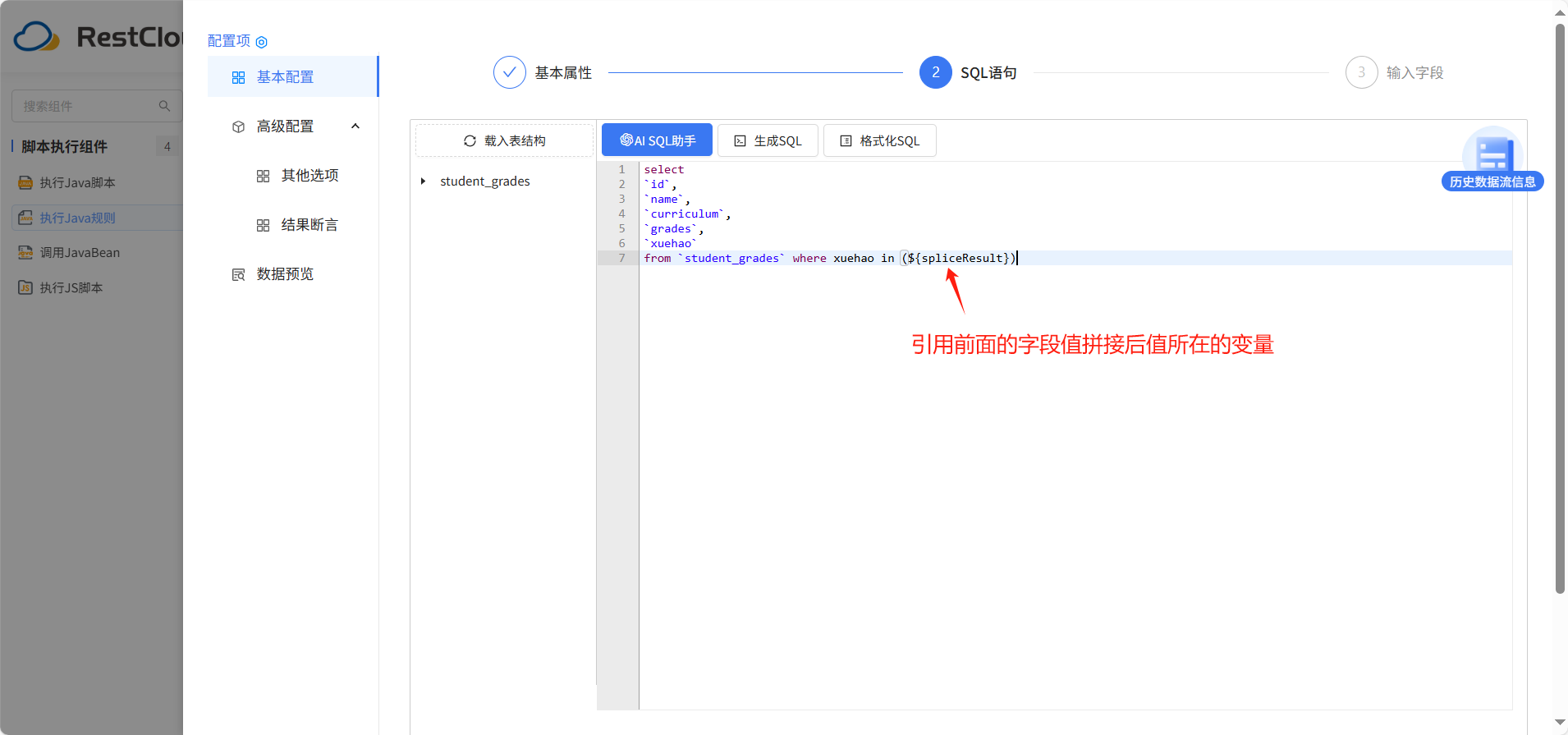 绑定字段值拼接规则,对获取到数据字段值进行拼接。