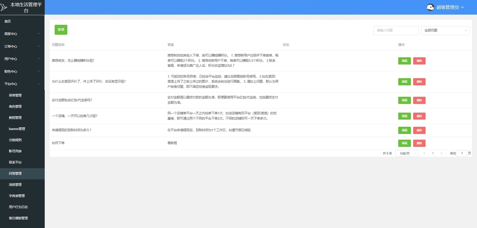问答管理:管理常见问题解答和用户提问(如添加新问题、更新答案和分类管理)。