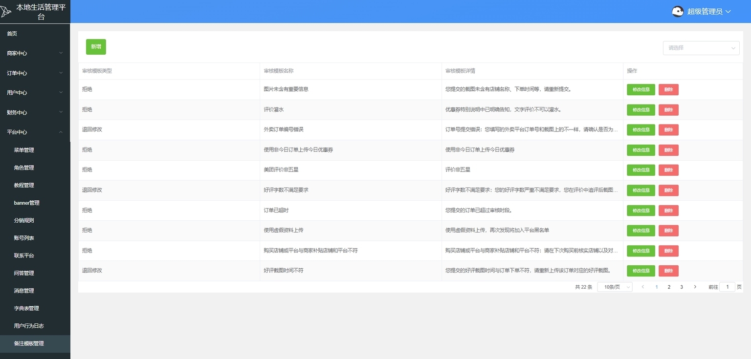 备注模板管理:创建和管理用户备注模板,方便用户在填写信息时快速选择和应用预定义备注内容。