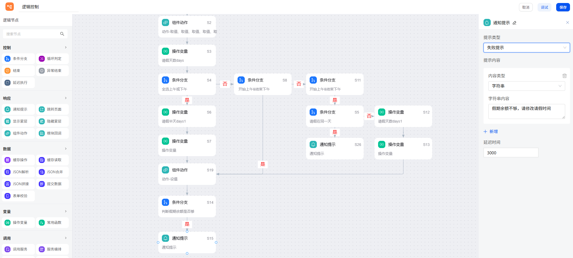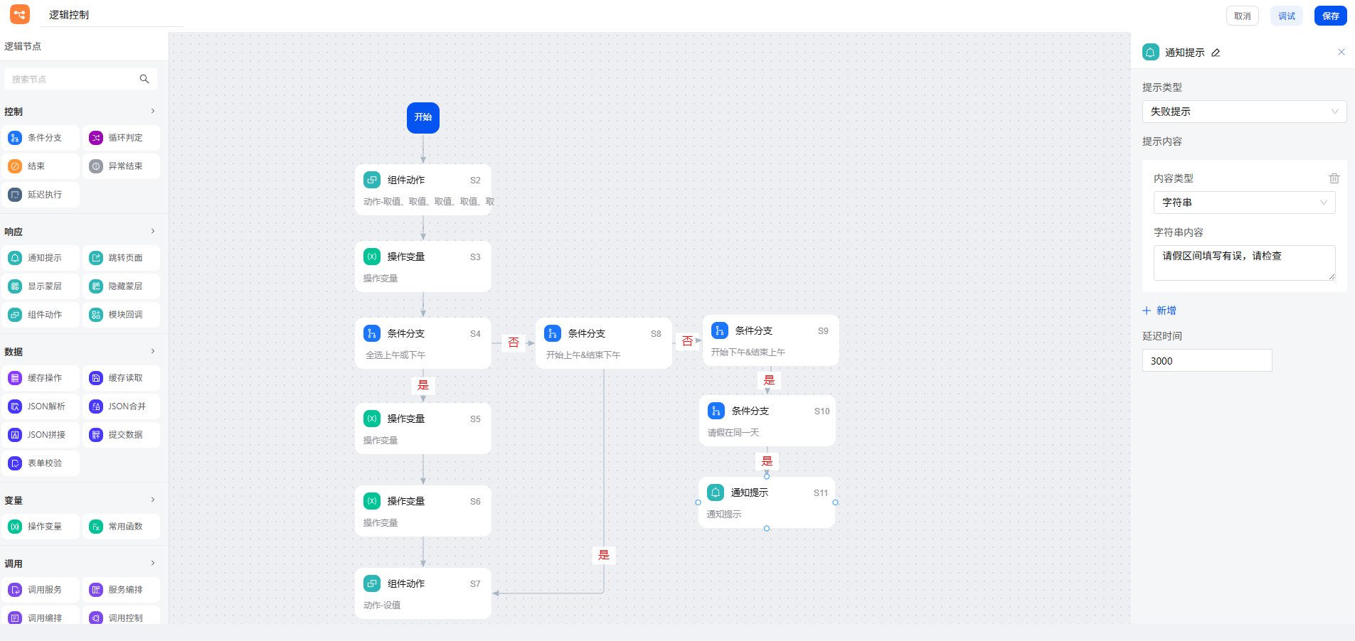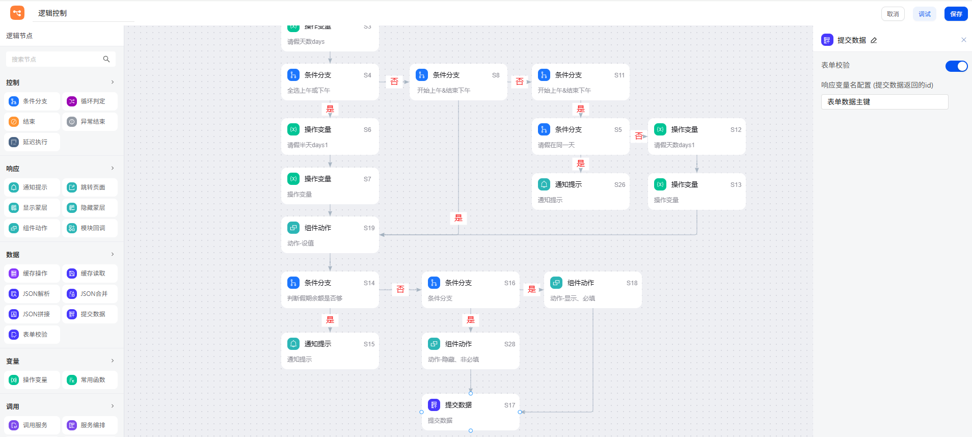 逻辑控制案例详解|基于 smardaten 实现 OA 一体化办公系统逻辑交互