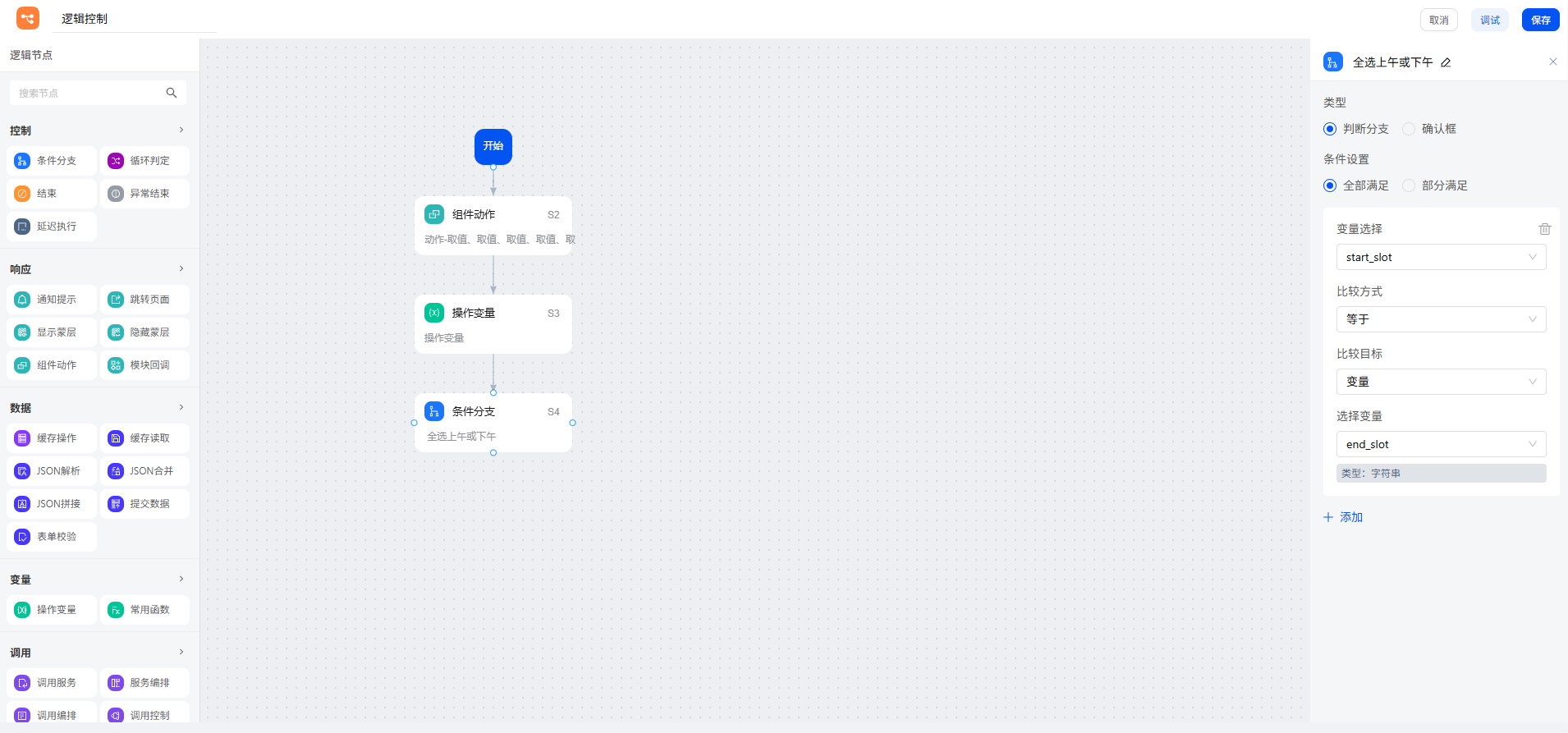 对于这类包含多种判断条件的业务场景,在 smardaten 中已不再需要编写复杂的多层 if-else 语句。我们仅通过一个条件分支节点,即可清晰串联所有判断路径,实现逻辑的可视化配置与灵活流转,大幅降低配置复杂度。