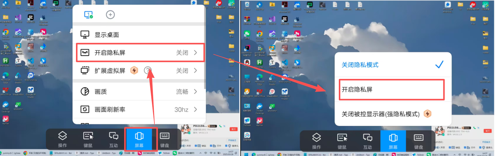 隐私屏可以通过实时加密与屏幕隐藏技术,在远程控制时将被控设备屏幕内容自动“黑屏”,适用于远程办公、财务处理等敏感场景,有效保障用户隐私与数据安全。