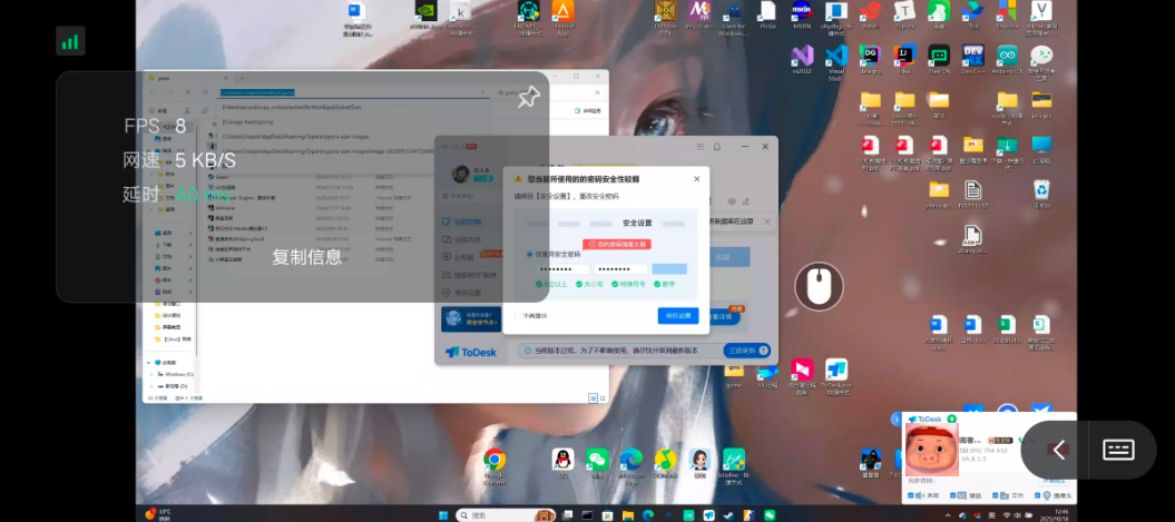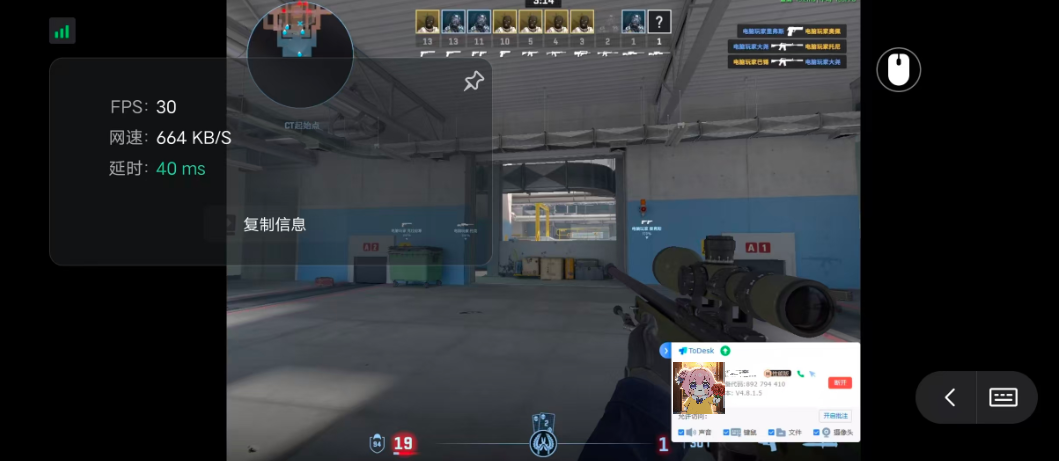 在游戏过程中,ToDesk 表现出强大的稳定性和流畅度,相对于向日葵是做得比较好的。没有出现严重的连接不稳定和网络波动幅度大的情况。